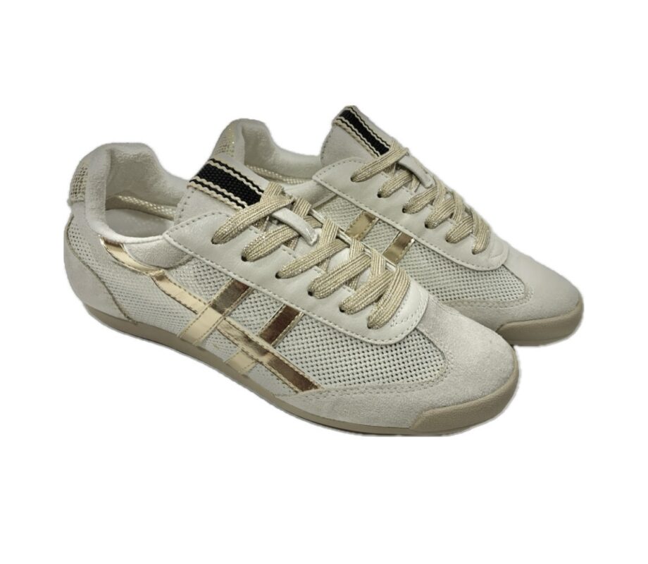 Zapatillas casual para mujer en color beige con oro,suela retro,ligeras,cómodas y actuales.